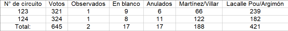 A continuación compartimos los votos que se dieron en los dos circuitos ubicados en nuestra localidad: