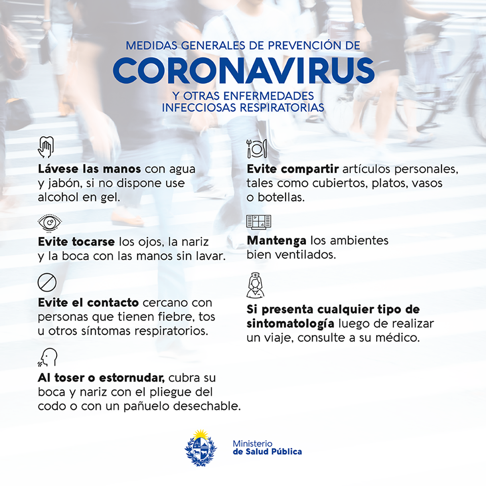 Desde el Ministerio de Salud Pública se publicaron medidas generales de prevención de Coronavirus y otras enfermedades infecciosas respiratorias.