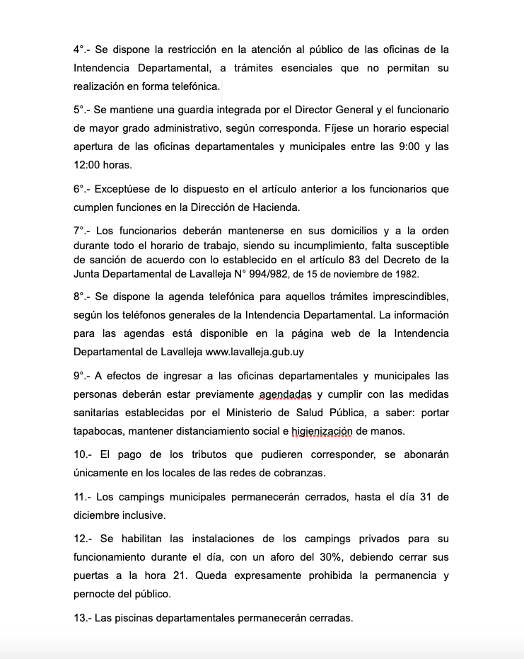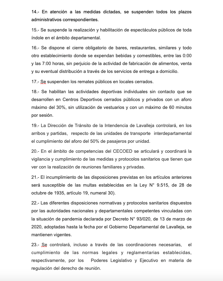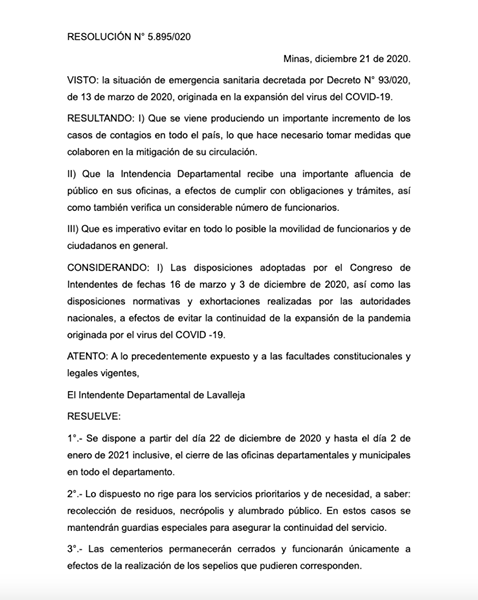 21.12.2020 Nuevas medidas adoptadas por la Intendencia de Lavalleja